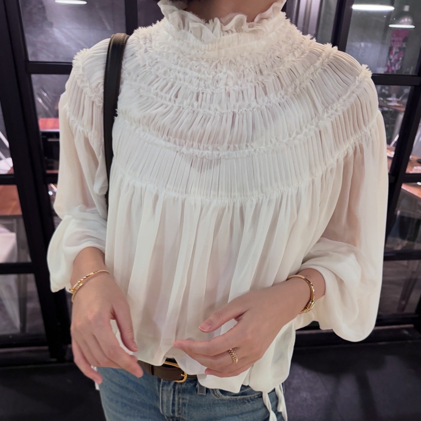 - Layered pintuck detailing